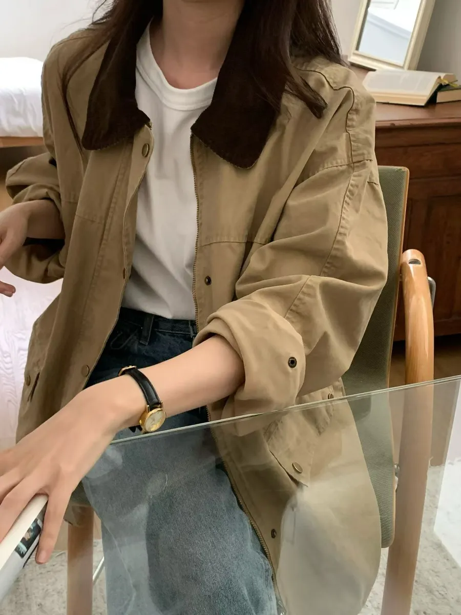 撞色領休閒工裝外套