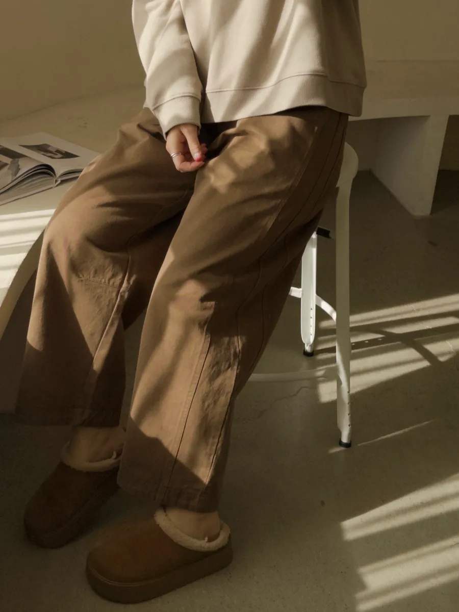 卡其.直筒休閒褲