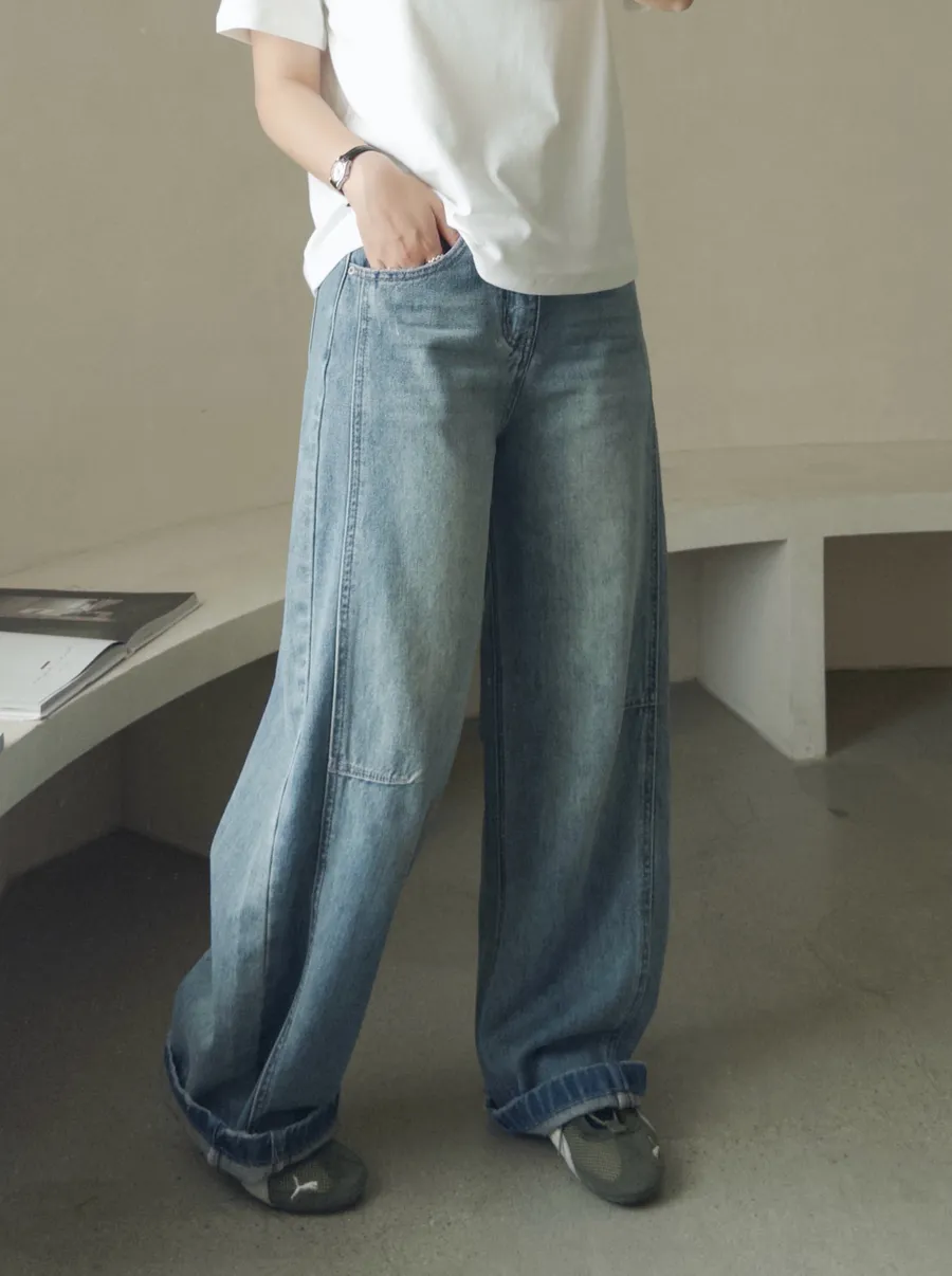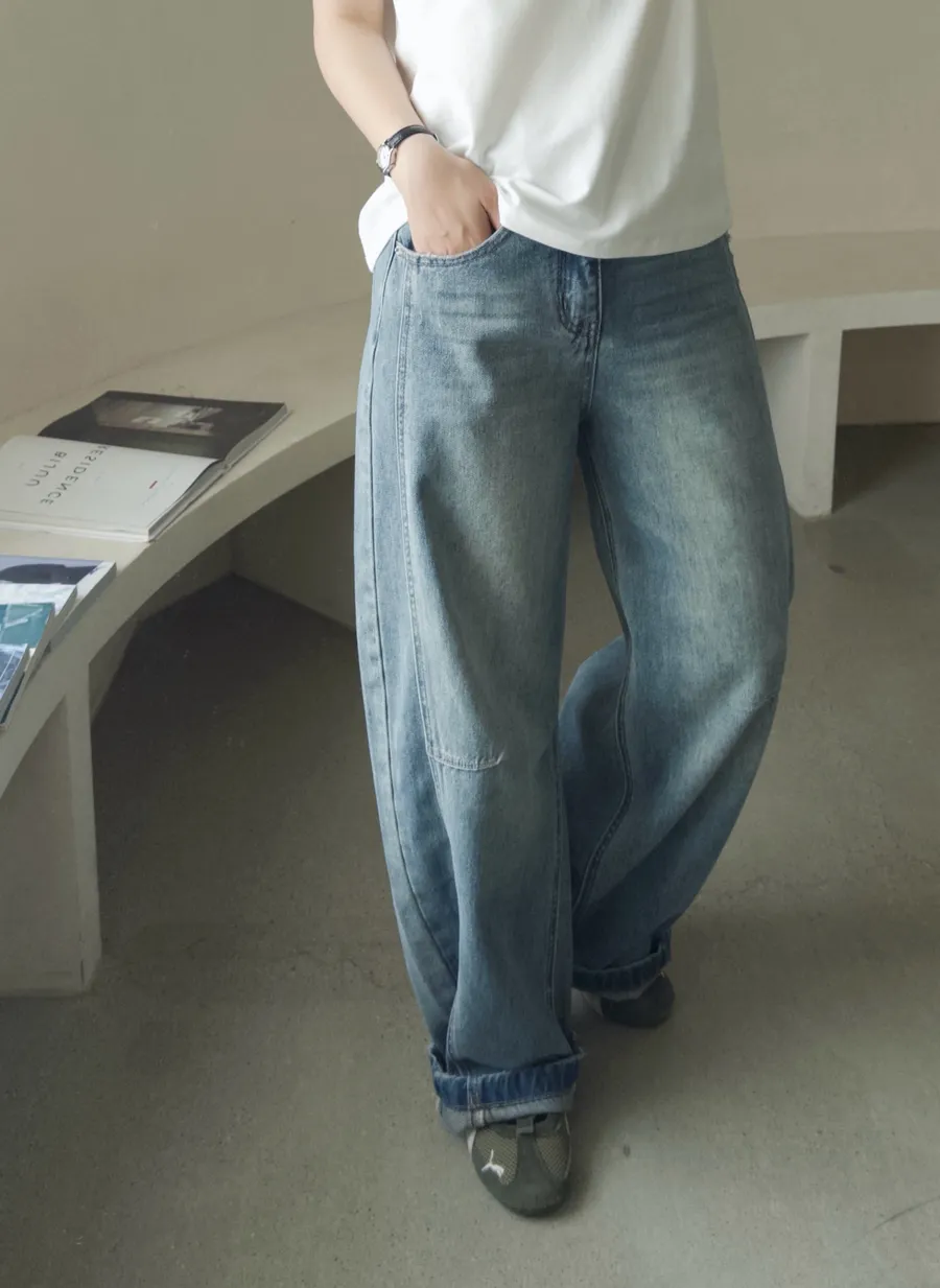 率性刷色顯瘦彎刀褲