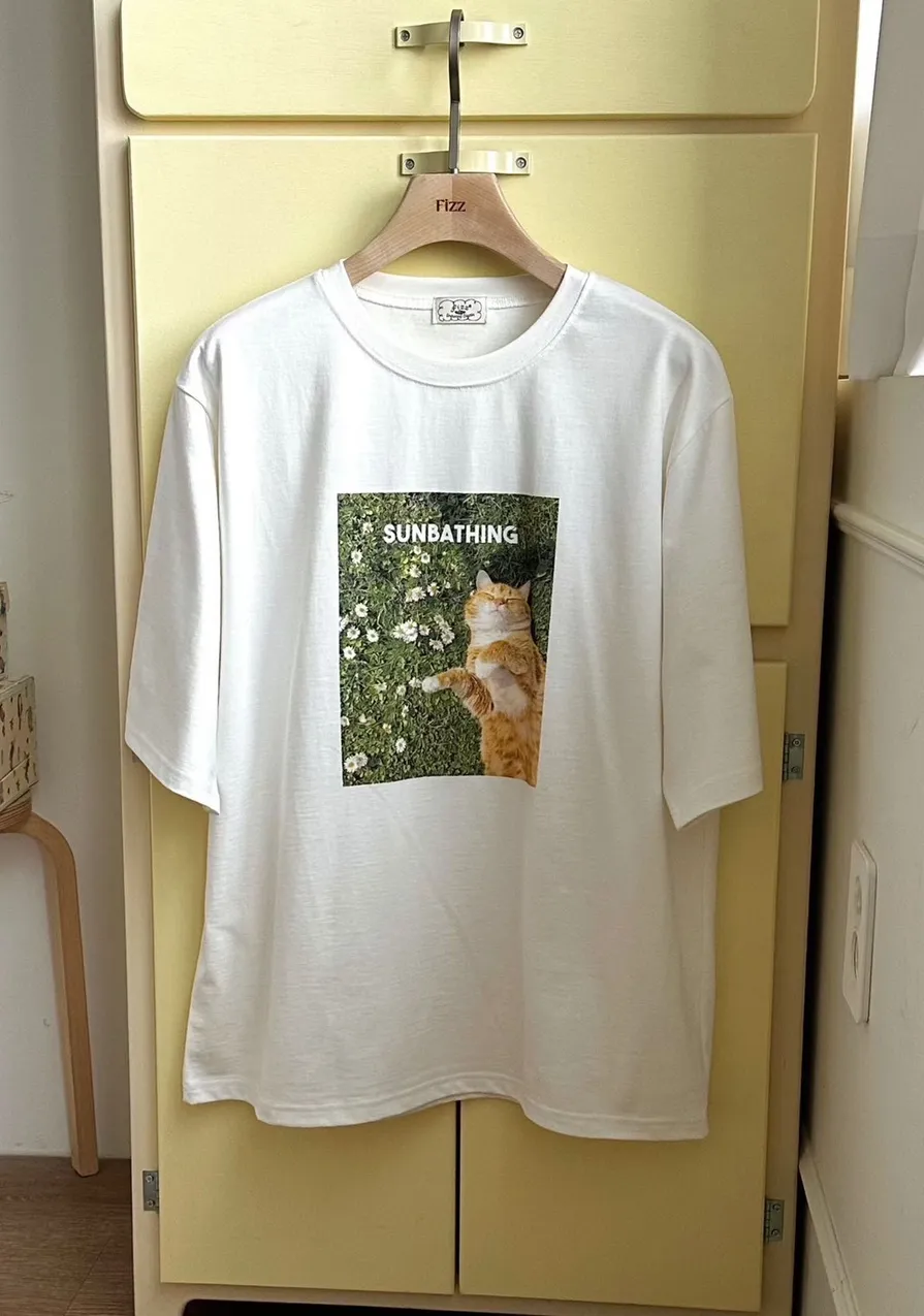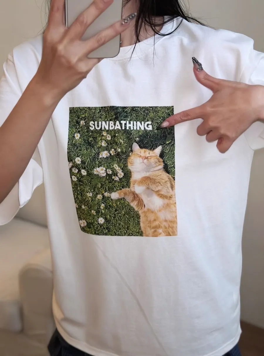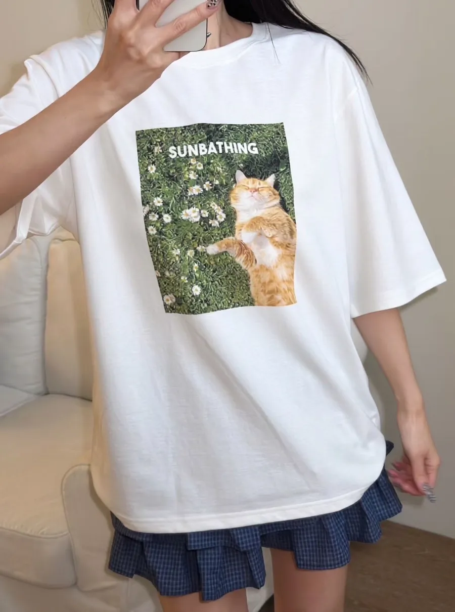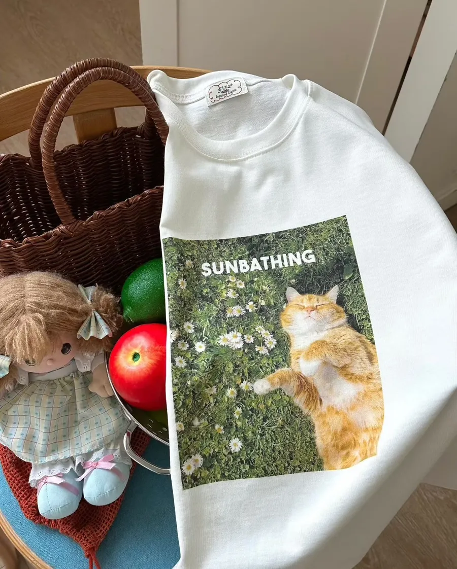 日光浴橘貓棉質上衣