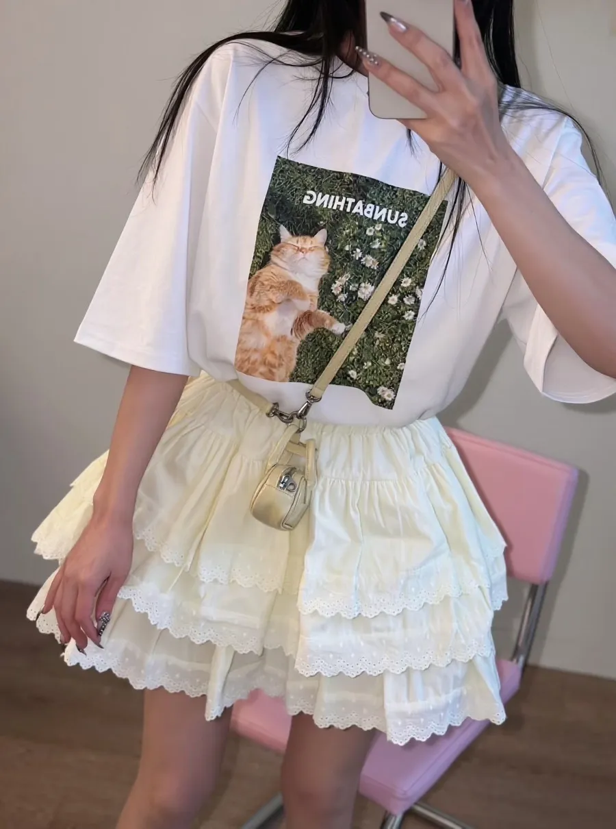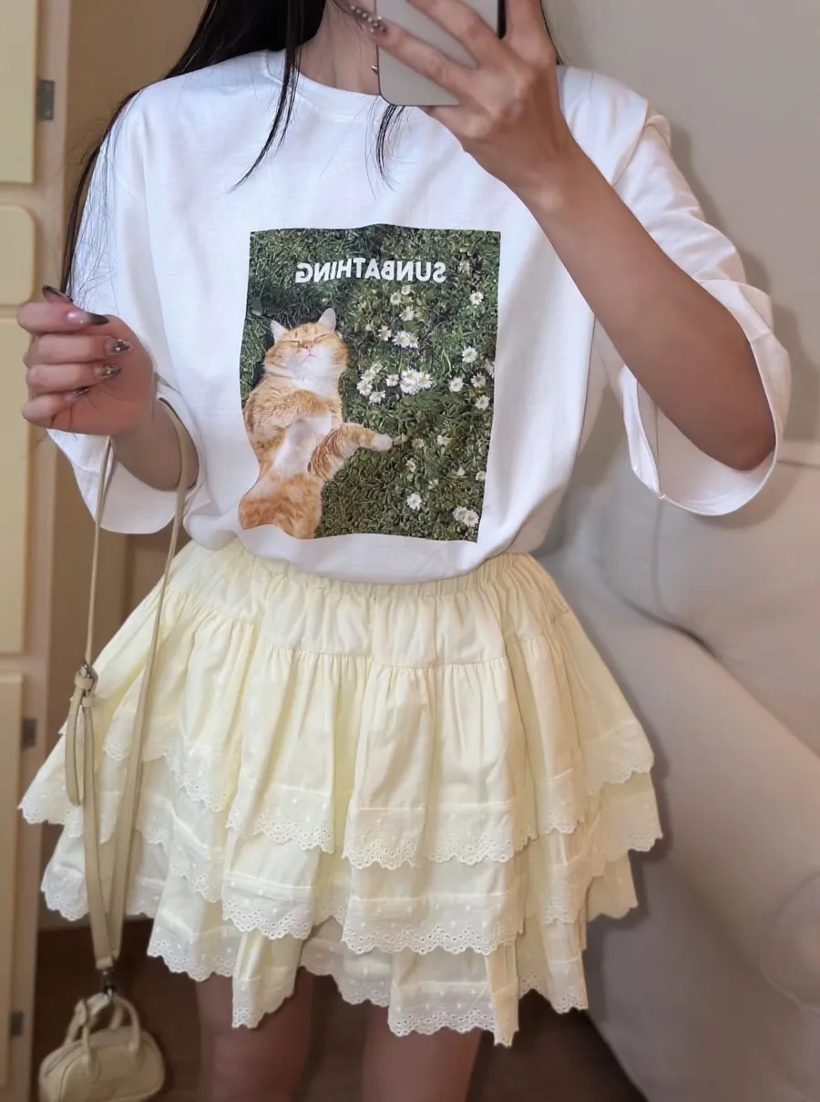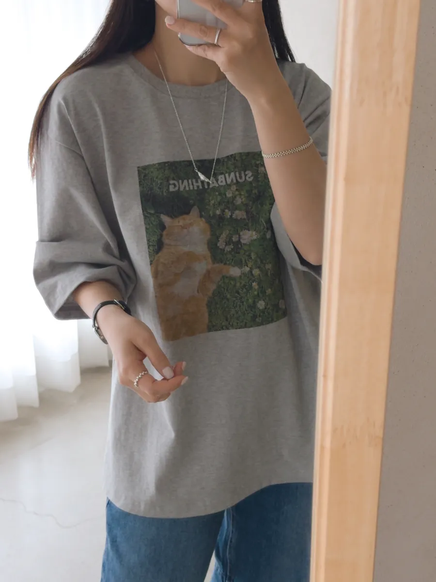 日光浴橘貓棉質上衣